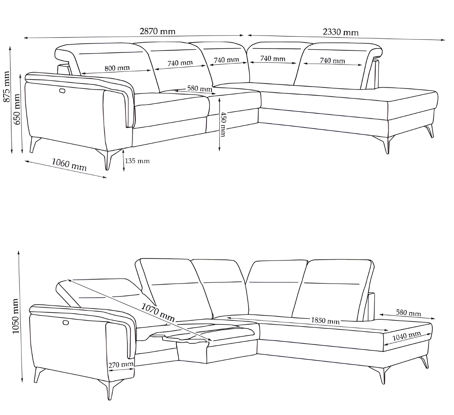 2870×2330×875 with recliner – 23 306 lei
