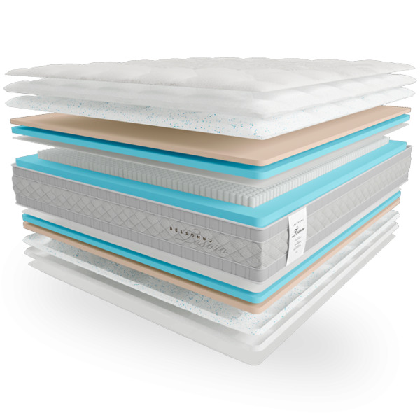 Duo-strat Tuffo Memoria: пена Memoria в сочетании с Supporto Schiuma точно повторяет контуры тела, равномерно распределяет давление и способствует полной релаксации.