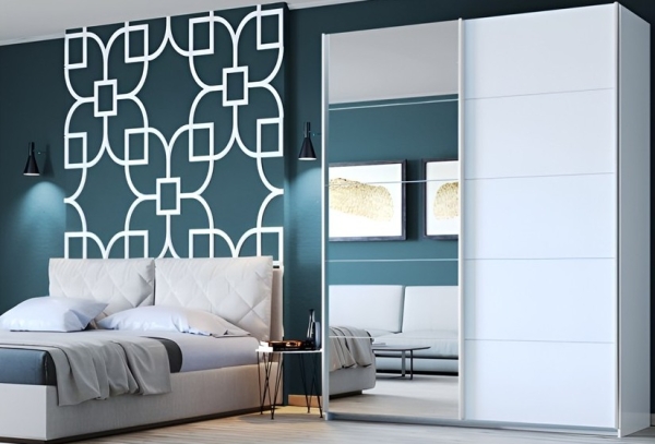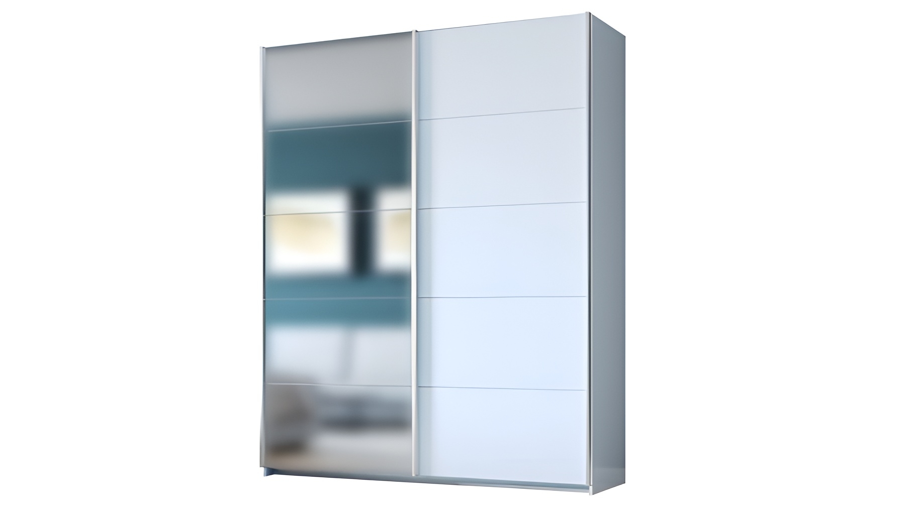 Двери: 2 двери (1 ЛДСП + 1 зеркало), 5 сегментов, ручки белые