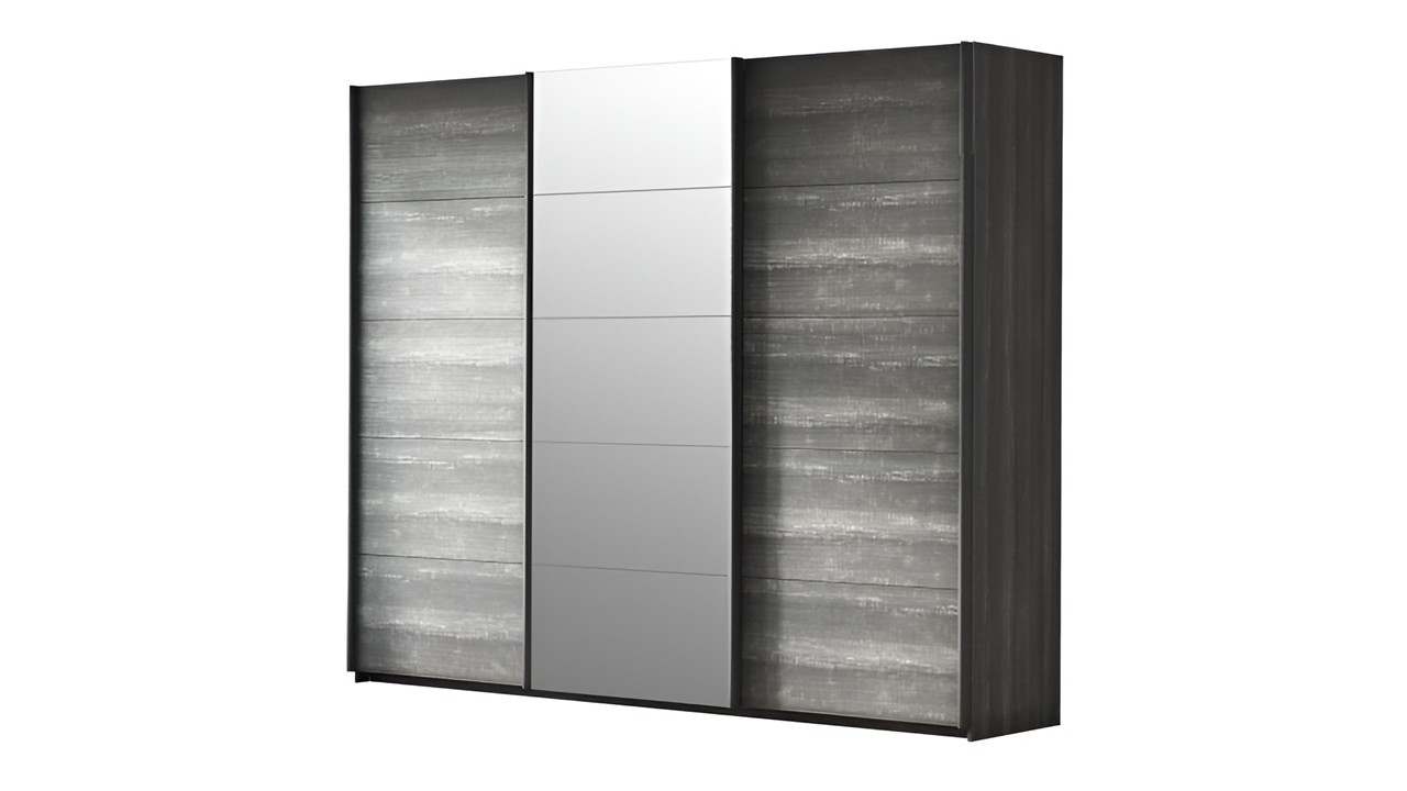 Двери: три двери по 5 сегментов — средняя с зеркалом, боковые из ЛДСП, ручки черные