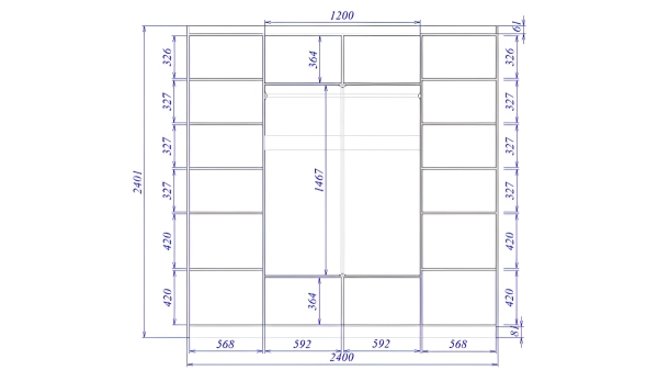 Блок ящиков: два стандартных блока (всего 4 ящика); опция — до 4 блоков в шкафу