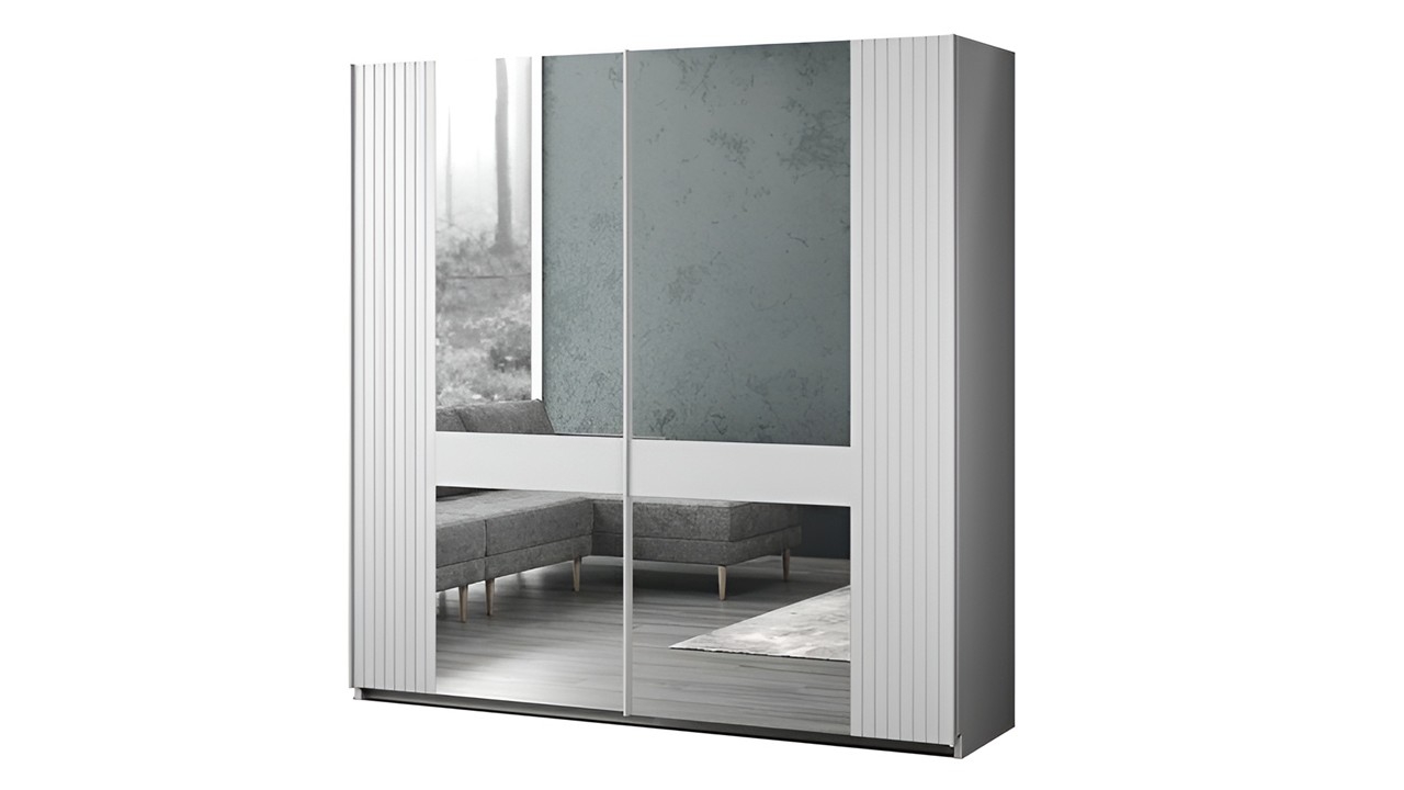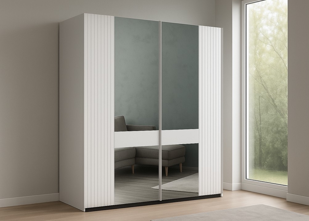 Двери: две двери — ЛДСП Нимфея Альба и зеркало, ручки белые