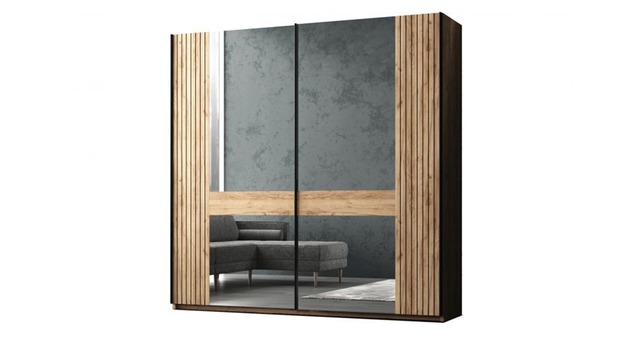 Двери: две двери — ЛДСП Дуб Крафт Золотой и зеркало, ручки черные